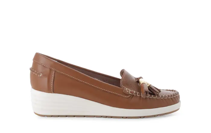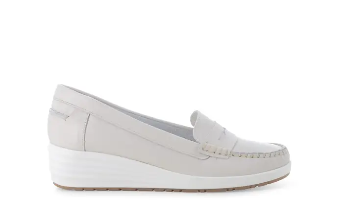Mocassino comodo classico con zeppa in pelle beige vaniglia 01028q