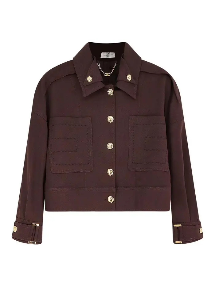 Giubbino Cropped In Viscosa Marrone