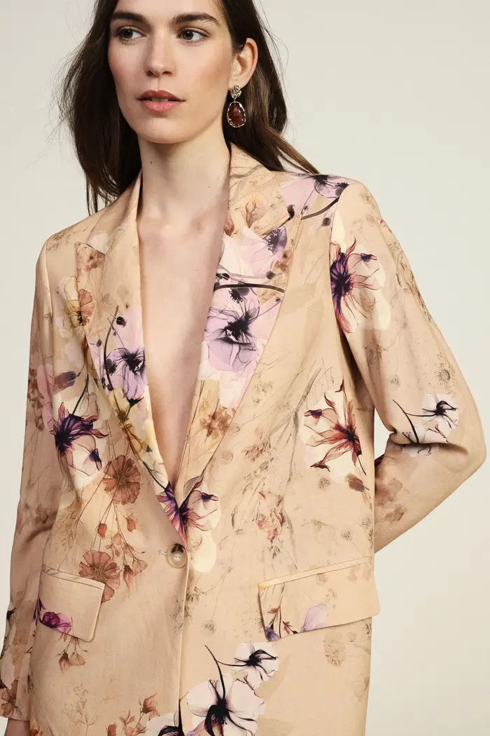 Blazer a stampa floreale con chiusura monopetto