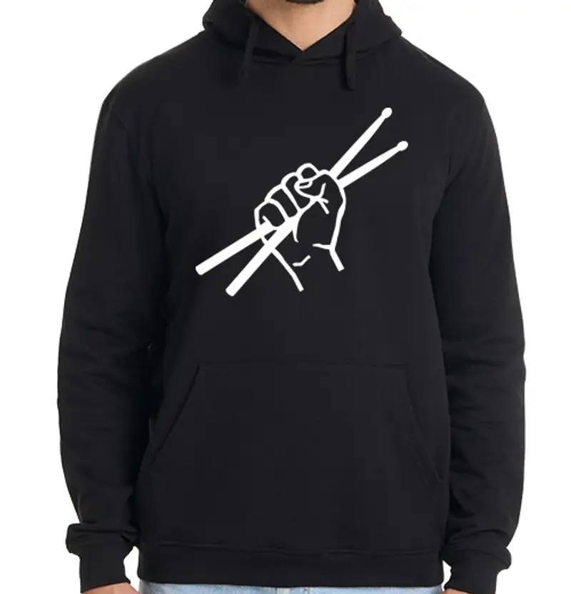 Felpa uomo con cappuccio bacchette. Felpa con cappuccio. (80% cotone e 20% poliestere), 280gr/m2, cuciture rinforzate e tasche a marsupio.