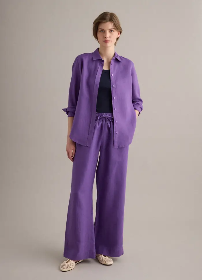 Camicia In Puro Lino Viola Regular Fit, Donna, Viola | StyleOutfit