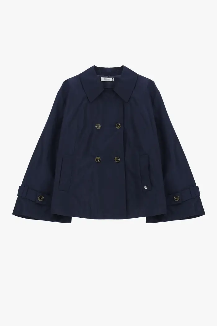 Giacca trapuntata corta doppio petto con spacchi Blu