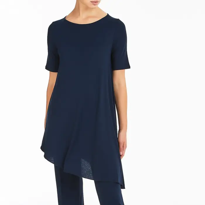 maglietta lunga con taglio in diagonale, ragno maglietta lunga in jersey di viscosa crêpe, un tessuto incredibilmente fresco e cascante realizzato con filati ad alta torsione che conferiscono una mano nervosa e increspat.