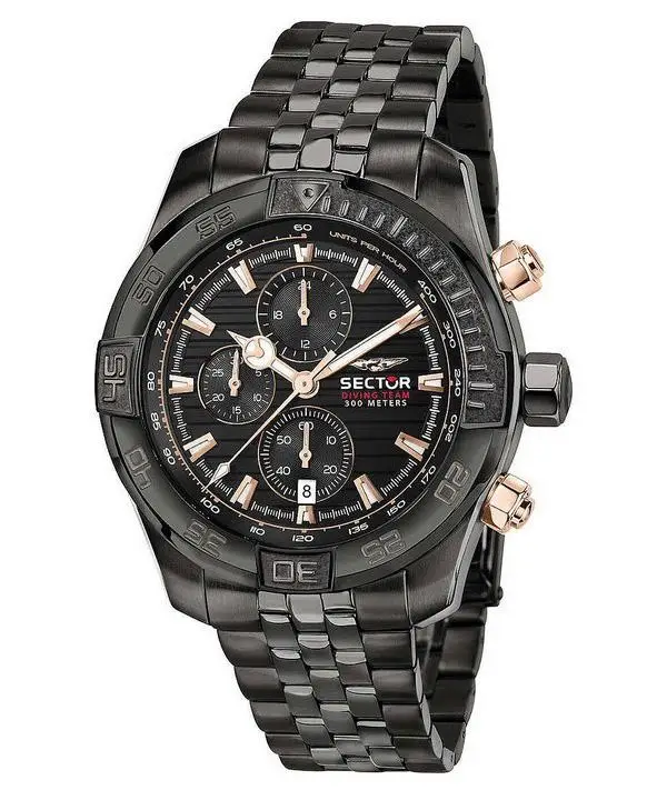 Sector Orologio da uomo Diving Team Cronografo Quadrante Nero Quarzo Subacqueo R3273635003 300M