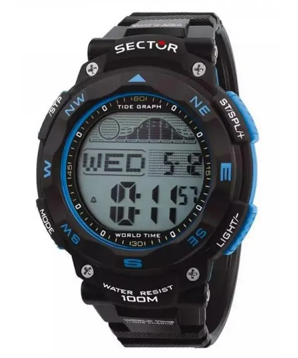 Orologio da Uomo Sector EX-35 Quarzo Quadrante Nero Digitale R3251534002 100M Caratteristiche Custodia Sintetica Cinturino in poliuretano Movimento al quarzo Cristallo minerale Quadrante nero Display digitale Tempo del m.