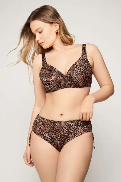 Bikini a balconcino leggermente imbottito con ferretto, con stampa leopardata con effetto leggermente arricciato sulle coppe Le spalline e il girotorace sono regolabili